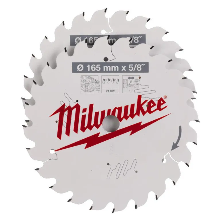 Milwaukee 4932479836 on 2 sahanterän pakkaus 165 x 5/8″ käsipyörösahoille, 24 hammasta.