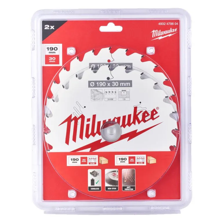 Milwaukee 4932479804 on 2 sahanterän pakkaus 190×30 mm puulle, 24 hammasta.
