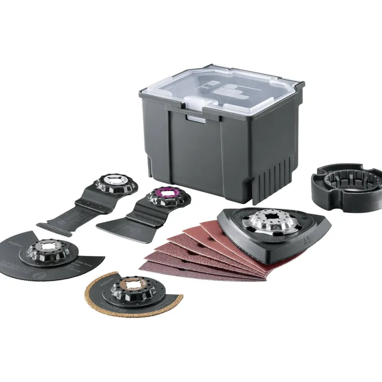 Bosch 2609256F49 on 12-osainen sahanteräsarja Starlock-monitoimityökaluihin. Sarja sisältää sahanteriä puun, lakka- ja maalipintojen, tiilen, marmorin, muovi-, metalli- ja alumiiniprofiilien työstöön.