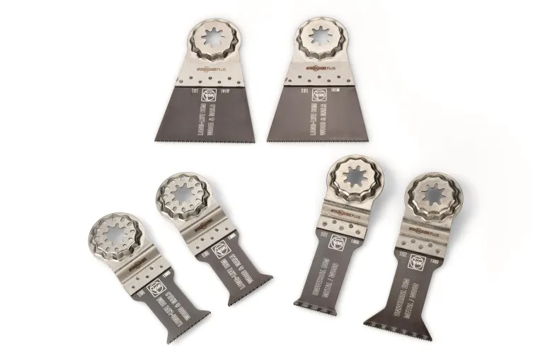 Sahanteräsarja, jossa on 6 E-Cut-upotussahanterää puun ja metallin sahaamiseen. Sahanterät sopivat kaikkiin FEIN MultiTools -työkaluihin sekä kaikkiin muihin tavallisiin Starlock Plus- ja Starlock Max -kiinnityksellä varustettuihin MultiTools-työkaluihin.