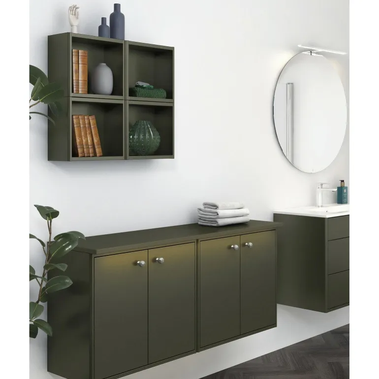 Säilytyskuutio avosäilytykseen kylpyhuoneessa. Malli voidaan yhdistää Graphic-sarjan seinäkaappeihin, ja se on saatavana kolmessa eri värissä.