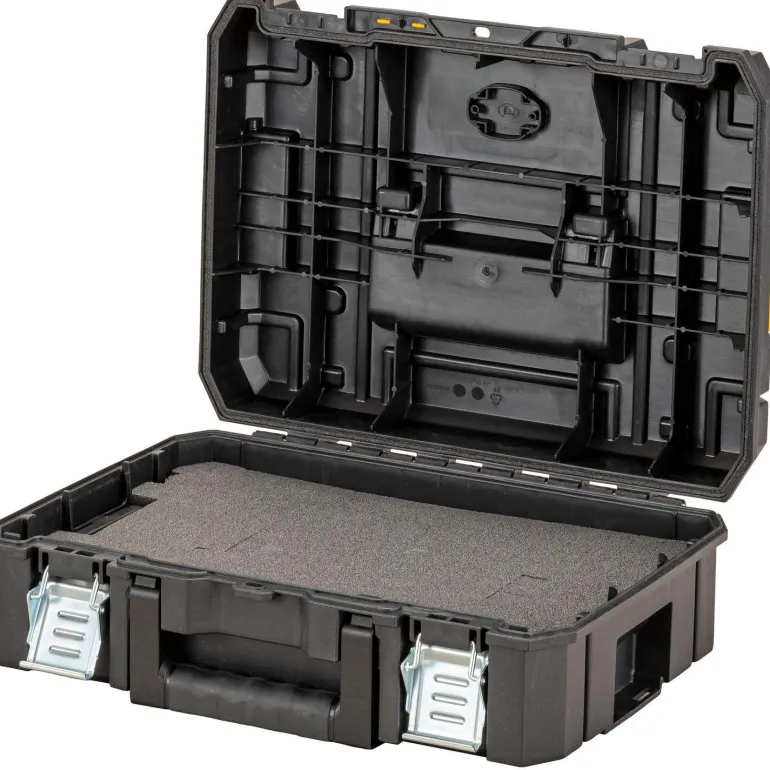 Lukittava riippulukko lisää turvallisuutta. Säädettävä vaahtomuovinen sisäosa työkaluille ja akuille. DEWALT TRACKER – kiinnityspiste sisäänrakennettu TSTAK-laatikoihin, jotta DEWALT Tracker voidaan asentaa ja seurata DEWALT Tool Connectin avulla. Kantavuus 30 kg.