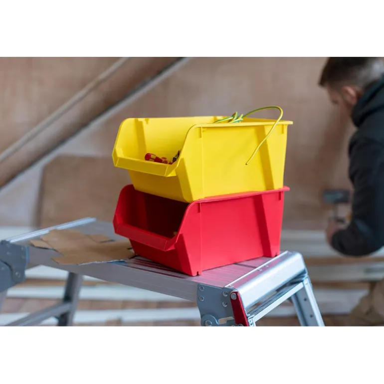 Säilytyslaatikko, jossa on suuri käyttöä helpottava aukko. Järjestä pikkutavarat ja tarvikkeet monipuolisella STANLEY®-säilytyslaatikolla. Laatikot voi pinota erilaisia säilytysratkaisuja varten.
