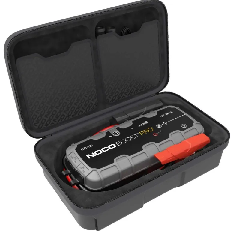 Noco GBC015 EVA on kevyt ja kestävä vetoketjullinen säilytyslaukku Nocon apukäynnistimelle GB150. Suojaa kosteudelta, pölyltä ja iskuilta. Vahvistetulla kahvalla ja kannen sisäpuolella lisätaskut käynnistimen lisätarvikkeille.