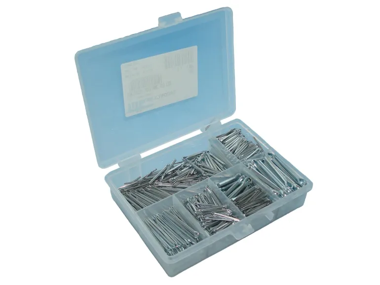 Saksisokat DIN 94 (ISO 1234), sinkitty, lokeroidussa muovikotelossa.