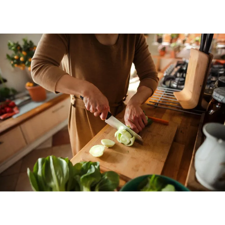 Monikäyttöinen aasialainen veitsi leveällä terällä, joka sopii täydellisesti lihan, kalan ja vihannesten leikkaamiseen. Veitsenterä on valmistettu kestävästä japanilaisesta ruostumattomasta teräksestä. Ergonomisesti suunnitellussa kahvassa on hyvin asennettu sormensuojus. Konepesunkestävä.
