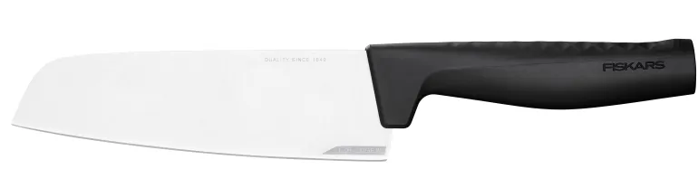 Fiskars Hard Edge -Santoku-veitsi on aasialaistyyppinen yleisveitsi leveällä terällä, joka sopii hyvin lihan, kalan ja kasvisten leikkaamiseen ja pilkkomiseen. Veitsessä on paksusta ruostumattomasta teräksestä valmistettu terä, jonka suunnittelussa on hyödynnetty innovatiivista LZR-EDGE™-teknologiaa. Teknologia pitää veitsen terävänä jopa neljä kertaa perinteisiä veitsiä pidempään. Veitsessä on ergonominen 3D-kuvioitu kahva, joka tarjoaa hyvän otteen. Veitsi on suunniteltu Suomessa ja se on konepesun kestävä.