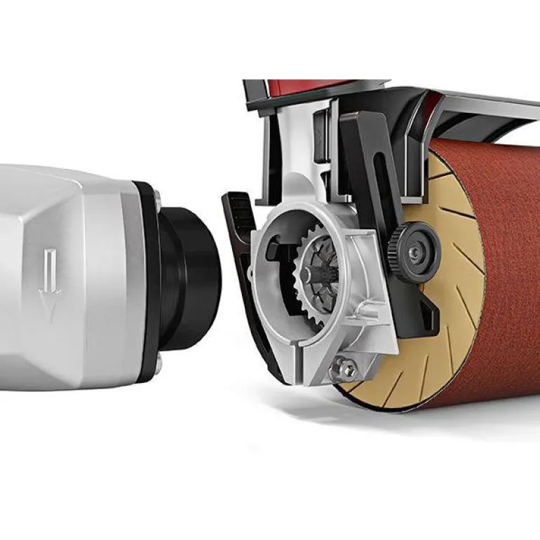 - Ainutlaatuinen työkalukiinnike pikaliittimellä työkaluvapaaseen vaihtoon kiillotuksen ja nauhahionnan välillä