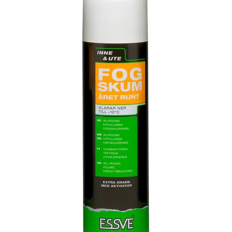 ESSVE Året Runt 750 ml on beigen/keltaisen sävyinen saumausvaahto sisä- ja ulkokäyttöön. Täyttävä, kiinnittyvä ja joustamaton vaahto, jota voi leikata ja maalata kovettumisen jälkeen. Nopeakäyttöinen vaahto, mukana aktivaattori.