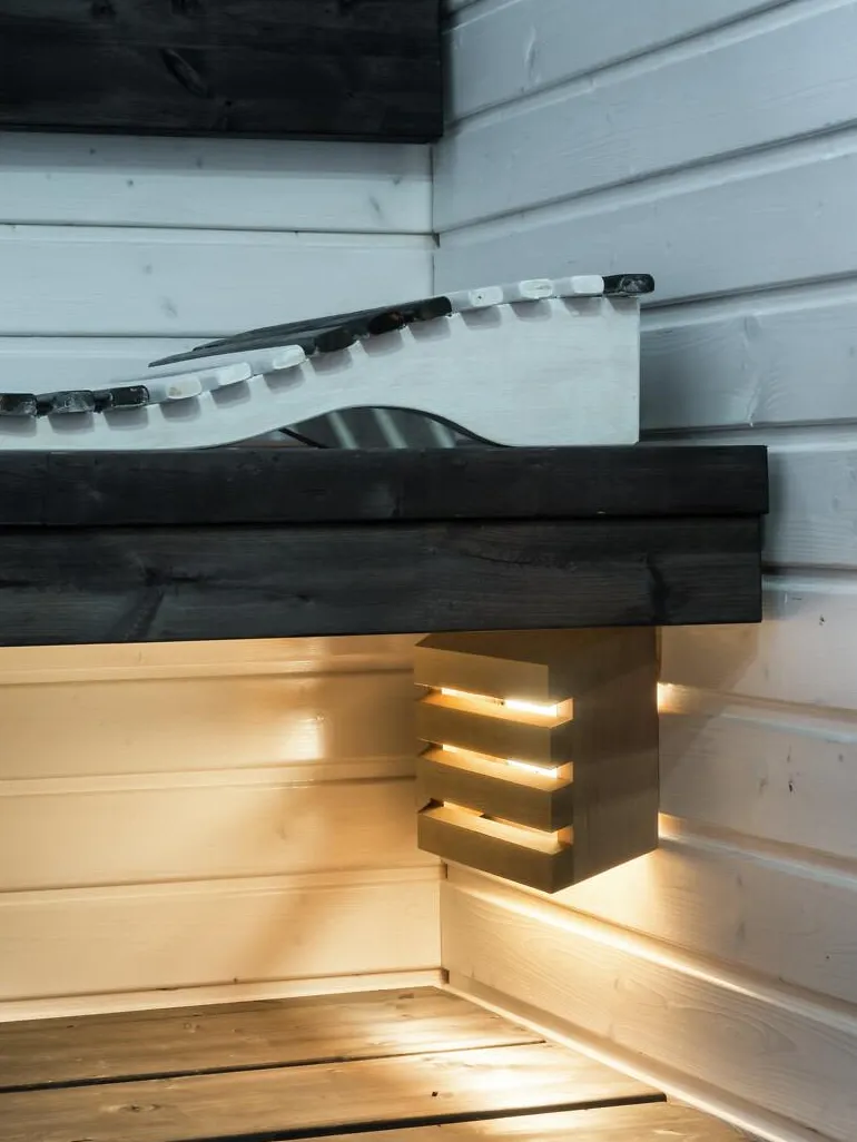 Saunaled Sq on tyylikäs saunavalaisin, jossa on kiinteä AC-led. Valaisin on himmennettävä, joten voit säätää valon määrää tilanteeseen sopivaksi. Valaisimen puuvarjostin valmistetaan Suomessa laadukkaasta kotimaisesta tervalepästä. Pöly- ja vesitiiviin valaisimen voi pinta- tai uppoasentaa seinään. Suosittelemme puuosien pintakäsittelyä puusuoja-aineella ennen käyttöönottoa. Voit myös sävyttää puuosat yksilöllisesti saunasi sisustukseen sopivaksi.