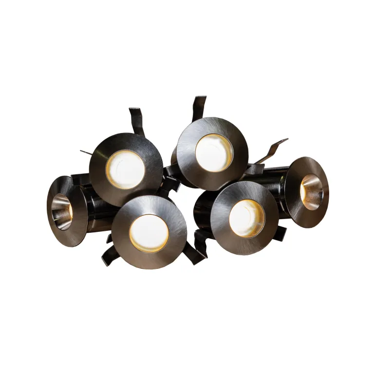 Täydellinen sarja, jonka avulla on helppo asentaa huomaamattomia ja tunnelmallisia pieniä valopisteitä saunan valaistukseksi. Harjatusta teräksestä valmistetut valaisimet, joissa on mukautettu valon virtaus häikäisyn estämiseksi. Valaisimissa on kaksi kaapelia sekä pikaliitäntä kätevää sarjakytkentää varten. Sarjassa on 6 kpl valaisinta, joissa on vaihehimmennettävä ohjain, jatkokaapeli ja liitäntäjohdot. Ohjaimella voidaan käyttää ja himmentää 5-12 valaisinta.