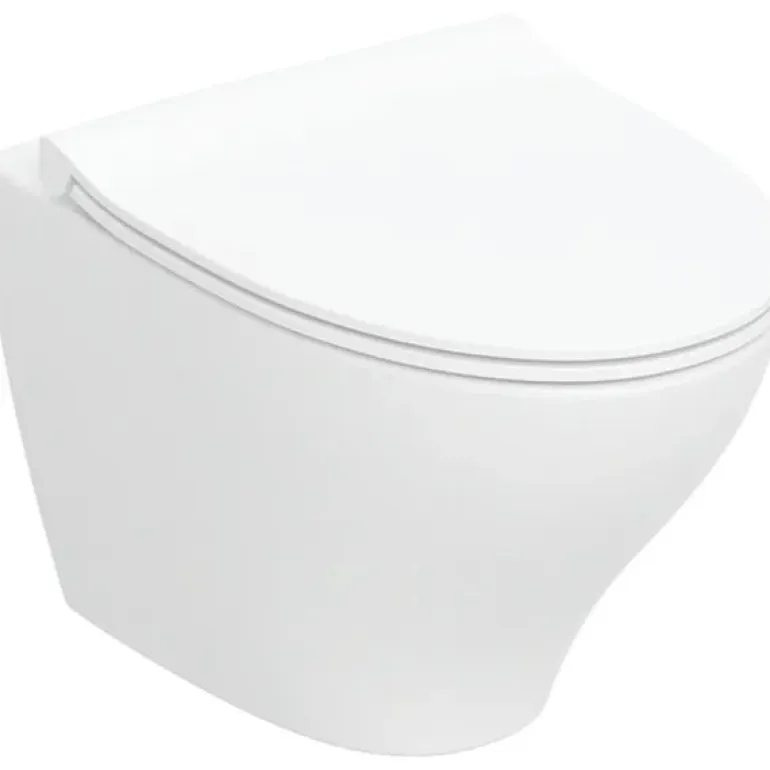 WC-istuin seinäasennukseen (piilohuuhtelusäiliölle). Piilokiinnitys ja sileä ulkopinta. Pehmeästi sulkeutuva istuinkansi (sandwich-mallinen).
