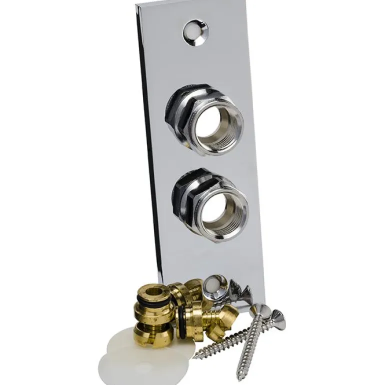 Trio Perfekta 3010040402 on seinäaluslevy. Seinäkiinnike 15 × G15 sisäkierre. Sopii sekä 12 että 15 mm:n kupariputkiin ja 15 mm:n PEX-putkiin.