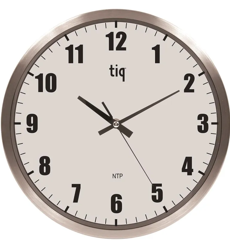 Analoginen NTP-seinäkello dataverkkoon liittämistä varten. NTP (Network Time Protocol):n ansiosta analoginen seinäkello on helppo synkronoida tietokoneen avulla. POE (Power Over Ethernet) antaa virtaa kellolle. Jos järjestelmässä ei ole virtaa, se voidaan käynnistää sovittimella tai POE-kytkimellä. Kellot on asetettu CET-aikaan (Keski-Euroopan aika). Seinäkellossa on alumiinirunko ja mineraalilasilinssi.
