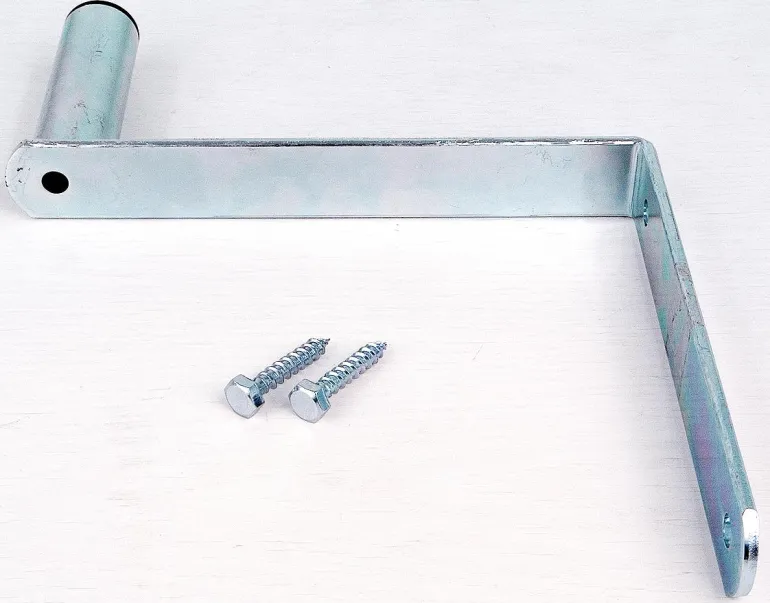 Taivutettu L-kiinnike, jonka yläosassa on putki, pienempien antennien asentamiseen seinälle. .