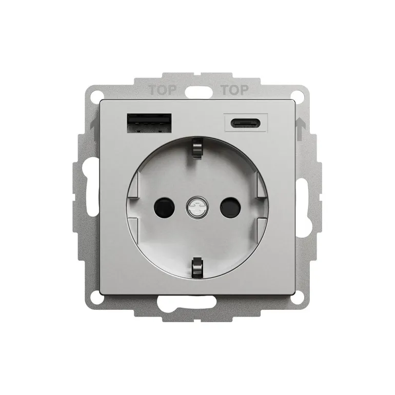 Valkoinen 1-osainen seinäpistorasia 2xUSB-latauksella, 3A tyyppi A+C. Pistorasia on maadoitettu ja siinä on pikaliitäntä ja kiinnityskourat. Kosketussuojattu uppoasennettavaksi kojerasiaan c/c 60 mm ja pinta-asennuksena 35 mm:n rasiaan.