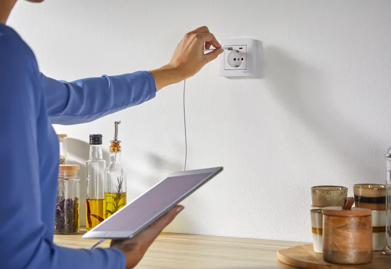 Schneider Electric Exxact on valkoinen 1-osainen seinäpistorasia 2xUSB-latauksella, 3A tyyppi A+C. Pistorasia on maadoitettu ja siinä on pikaliitäntä ja kiinnityskourat. Kosketussuojattu uppoasennettavaksi kojerasiaan c/c 60 mm ja pinta-asennuksena 35 mm:n rasiaan. Täydennettävissä millä tahansa Exxact-kehyksellä.