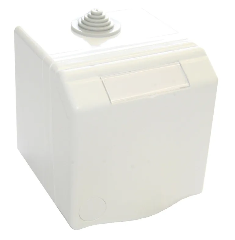 Vedenpitävä pistorasia seinäasennukseen. Yhdistettävä johdinalue UAB:lle ja UA:lle 1–2,5 mm² ja kiinteälle kaapelille 1–4 mm². Toimitetaan kaapelin läpiviennillä. Pistorasiat voidaan varustaa myös lukolla.
