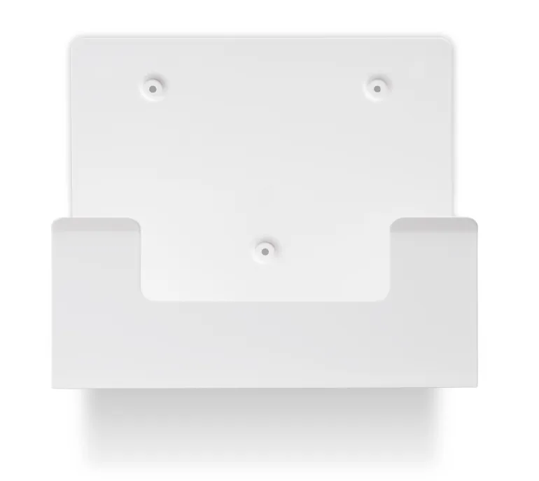 Seinäteline Cederroth silmänhuuhtelupakille (REF 51011042). Seinätelineessä silmänhuuhtelupakki on tietyssä paikassa ja siten nopeasti löydettävissä.