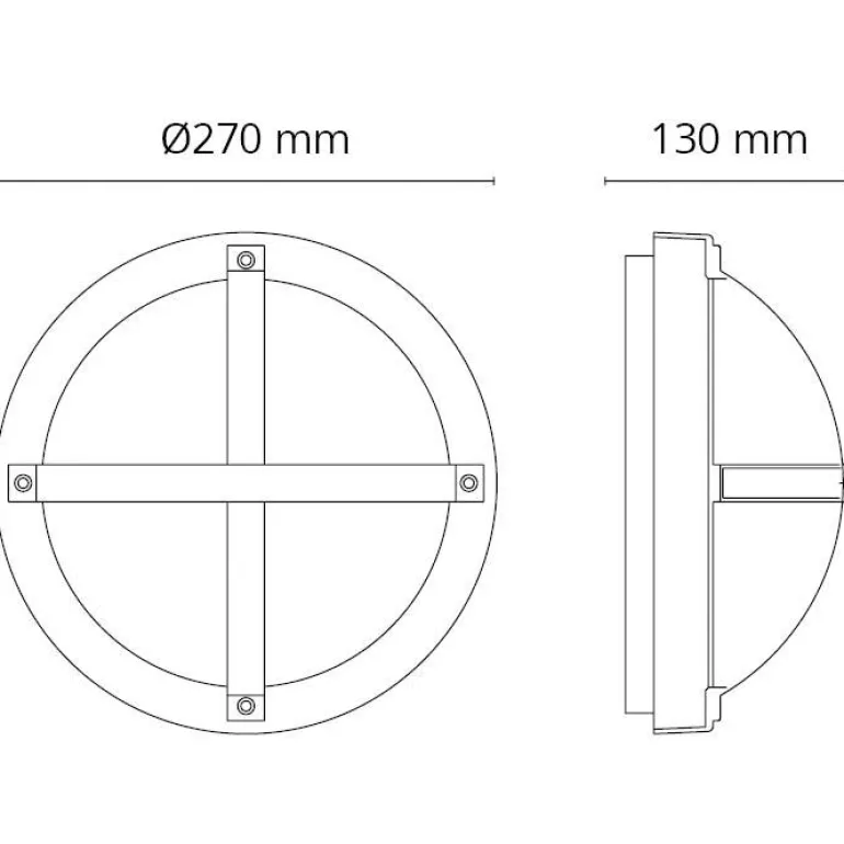 Grafiitinharmaa 11,5 W:n seinävalaisin pinta-asennukseen kattoon tai seinään. Valaisimen värilämpötila on 3000 K, valovirta 610 lm ja valon hajontakulma 120°. Paloaika 50 000 tuntia. Energialuokka A+ ja iskunkestävyysluokka IK10.