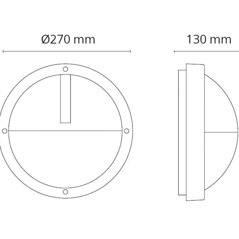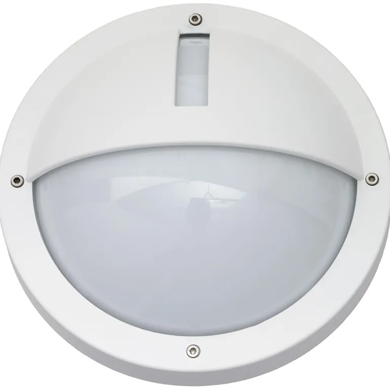 11,5 W:n seinävalaisin, jonka voi asentaa sekä ulos että sisälle, kattoa tai seinää vasten. Erittäin kestävä valaisin, joka kestää korroosiota ja jonka suojausluokat ovat IP65 ja IK10. Unossa on silmäluomen muotoinen häikäisysuoja valoaukolla.