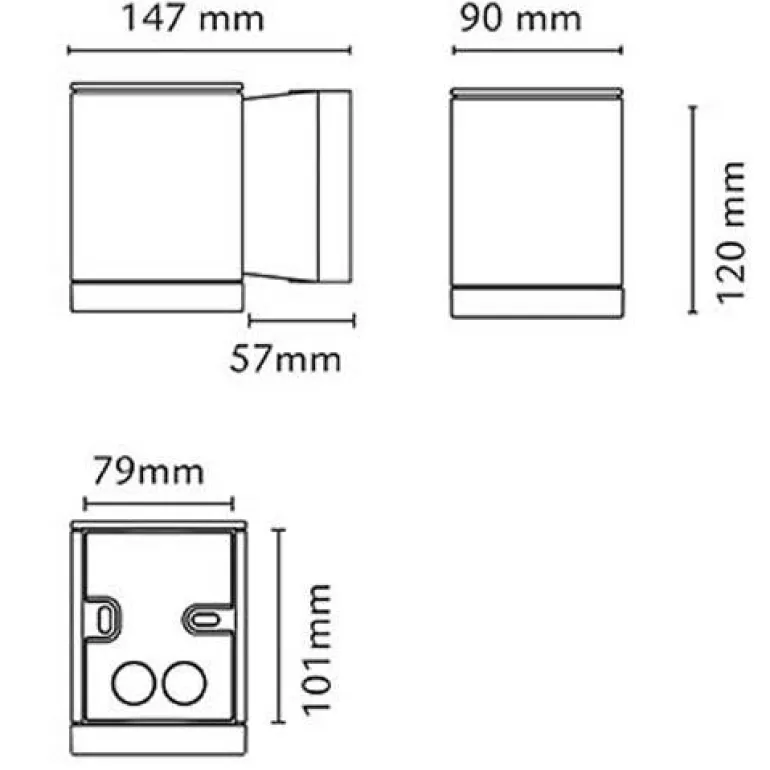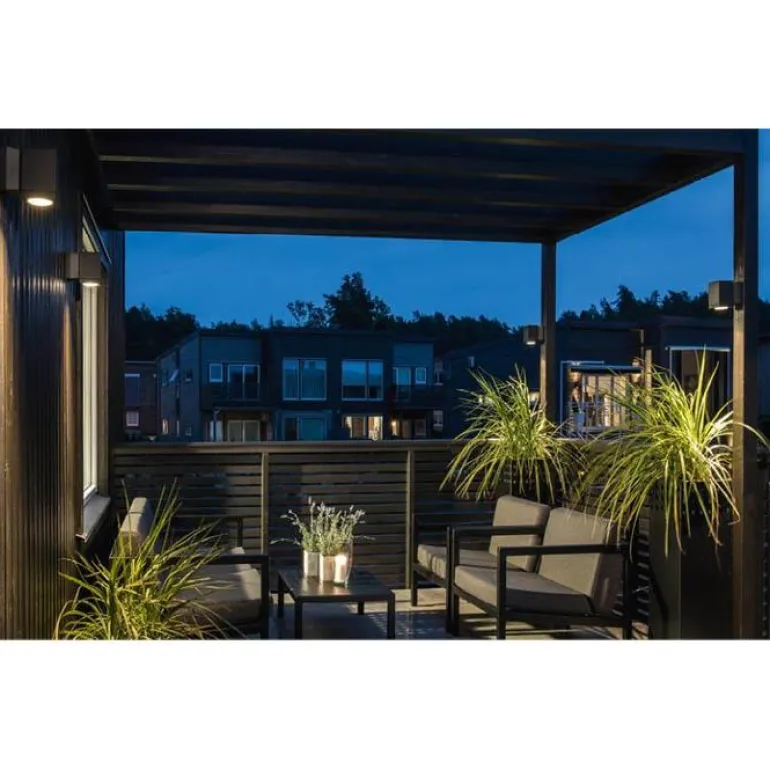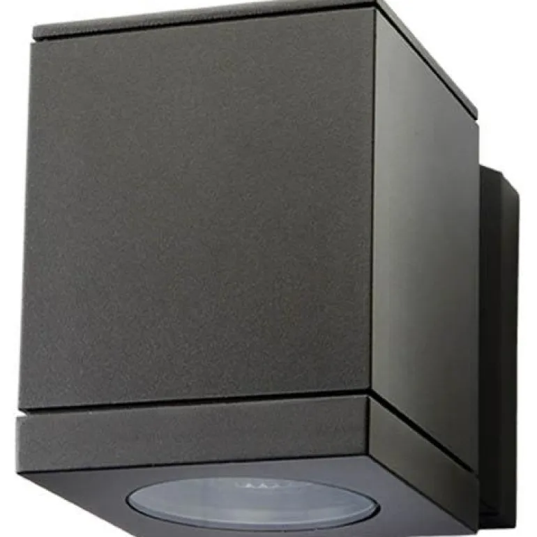 Grafiitinharmaa jauhemaalatusta valualumiinista valmistettu 4,5 W:n seinävalaisin, kirkas lasi, varustettu himmennettävällä GU10-kantaisella LED-valonlähteellä. Värilämpötila 2700 K, valovirta 180 lm ja hajontakulma 35°. Energialuokka A ja suojausluokka IP54.