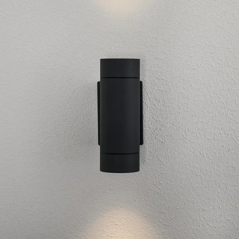 Ajattomasti muotoiltu seinävalaisin, valaisee ylös ja alas. GU10-kannan ansiosta värilämpötila ja valoteho voidaan valita vapaasti. Erillinen taustakappale kaksoisläpiviennillä sekä pikaliittimet ketjutusmahdollisuudella helppoa asennusta varten. IP55-luokitus sekä anodisoitu ja jauhemaalattu valaisinrunko koviin sääolosuhteisiin. Mukana toimitetaan korokkeet kaapelin pinta-asennusta varten.
