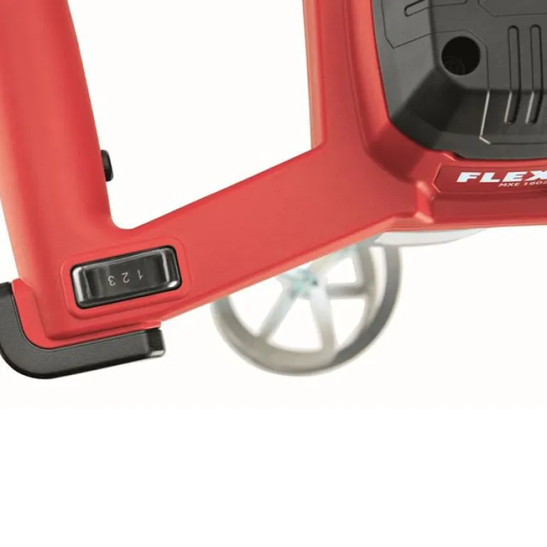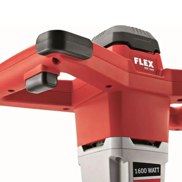 FLEX MXE 1602 -sekoituskoneessa on kestävä 2-vaihteinen vaihteisto, materiaalin mukainen kierrosluku, suuri vääntömomentti ja pitkä käyttöikä. Ylikuumenemissuoja, ylikuormitussuoja ja portaaton vipukytkin, jolla nopeutta voi säätää enimmäiskierroslukuun asti. Suuri vääntömomentti kaikilla kierroslukualueilla ja miellyttävä kolmen kierrosalueen käyttökytkin, johon yltää otealueelta työtä keskeyttämättä. Käynnistyskytkimen kumisuoja estää likaa pääsemästä kytkimeen ja nopeusasetus tarjoaa optimaalisen sekoitusnopeuden.