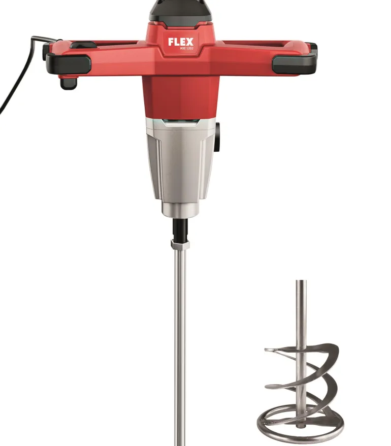 FLEX MXE 1202 -sekoituskoneessa on kestävä 2-vaihteinen vaihteisto, materiaalin mukainen kierrosluku, suuri vääntömomentti ja pitkä käyttöikä Sekoittimessa on ylikuumenemissuoja, ylikuormitussuoja ja portaaton vipukytkin, jolla nopeutta voi säätää enimmäiskierroslukuun asti. Miellyttävä kolmen kierrosalueen käyttökytkin. Suojatun kytkimen säätö kättä irrottamatta kytkimestä, kumisuojus suojaa roiskeilta. Eri käyttökohteille 60 kg:aan asti. Sopii kaakeliliimalle, täyteaineyhdisteille, liimoille, kipsille ja laastille.