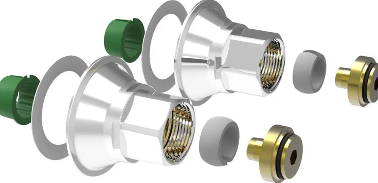 Sekoittimen kiinnike 160 mm:n keskietäisyydellä, 16 mm:n PEX-putkien liittämistä varten. Ruuvinreikiä laattojen ja vedeneristyksen läpi ei tarvita.