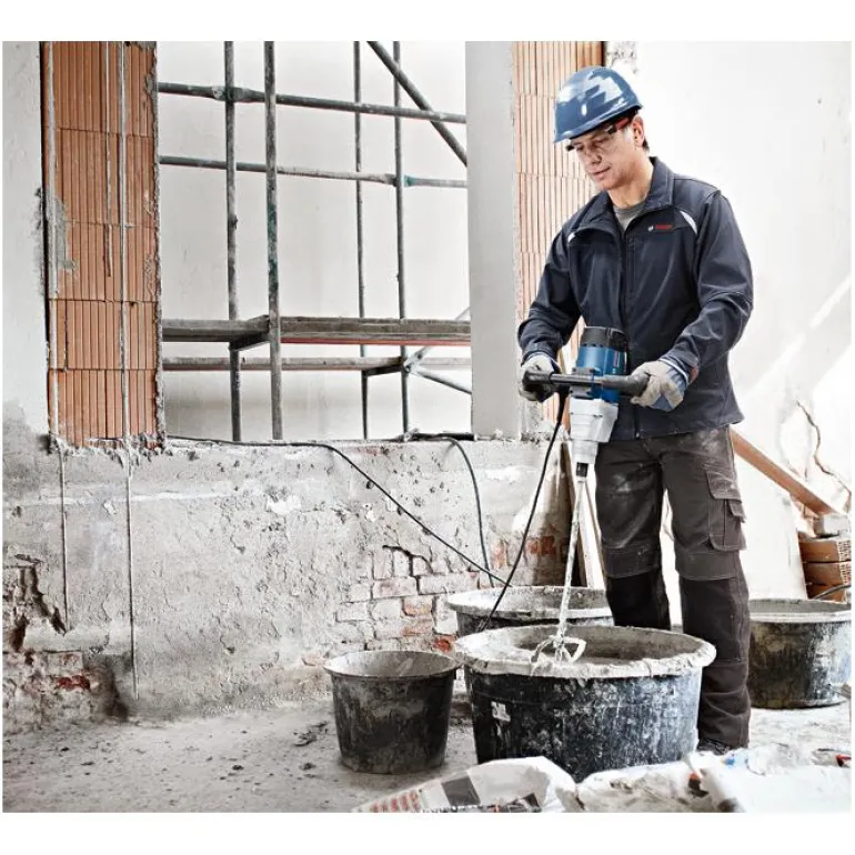2-vaihteinen sekoituskone, 1800W. Ohut- ja paksujuoksuisten rakennusaineiden sekoitukseen enintään 80 kg:n erille.