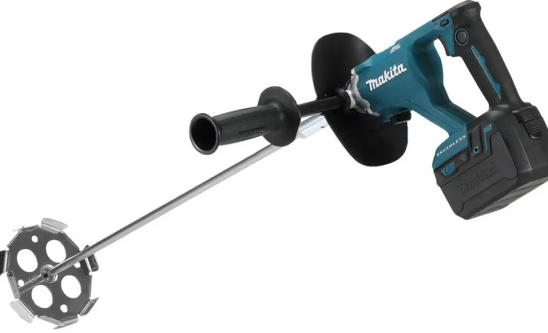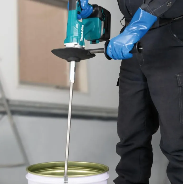 Makita DUT130 LXT on akkukäyttöinen sekoituskone hiiliharjattomalla moottorilla esimerkiksi tasoitteiden ja laastien sekoittamiseen. Vaivaton käsitellä ja kevyt kantaa ja siirtää työkohteessa (paino vain 2,8 kg).