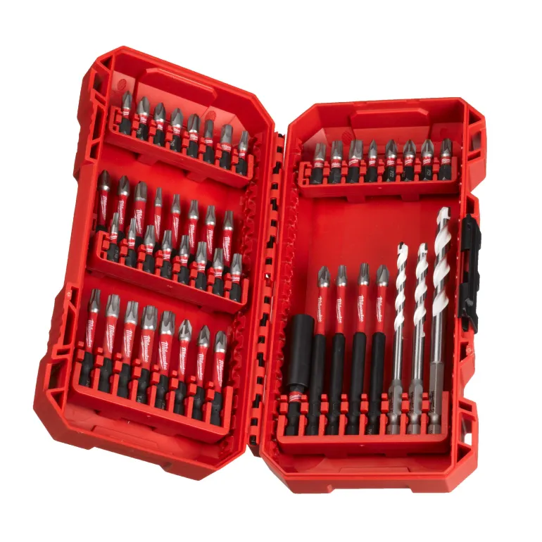Milwaukee 4932492005 SHOCKWAVE™ IMPACT DUTY -ruuvauskärjet on suunniteltu käytettäväksi iskevissä ruuvinvääntimissä. Terät ovat ihanteellisia vaativiin iskutoimintosovelluksiin ja tarjoavat erinomaisen ratkaisun kaikkiin kiinnitystarpeisiin. SHOCK ZONE™ -geometria mahdollistaa terän joustamisen jousen tavoin. Laserkovetettu WEAR GUARD TIP™ parantaa kestävyyttä ja käyttöikää. SHOCK ZONE™ -muotoilu ja erikoiskuumennusprosesi vähentää jännitystä kärjessä, mikä pienentää murtumisen riskiä ja vaimentaa iskuja. Erikoisvalmistettu MILWAUKEE®-metalli tekee SHOCKWAVE™-kärjistä iskunkestävämpiä. SHOCKWAVE™-ruuvauskärjet: 24 x 25 mm (pituus) 1 x PH1 / 3 x PH2 / 1 x PH3, 1 x PZ1 / 3 x PZ2 / 1 x PZ3, 2 x TX10 / 1 x TX15 / 3 x TX20 / 3 x TX25 / 2 x TX30 / 1 x TX40, 1 x Hex 4 mm / 1 x Hex 5 mm. 16 x 50 mm (pituus) 2 x PH2 / 1 x PH3, 2 x PZ2 / 1 x PZ3, 1 x TX10 / 1 x TX15 / 2 x TX20 / 2 x TX25 / 2 x TX30 / 2 x TX40. 4 x 90 mm (pituus) 1 x PH2, 1 x PZ2, 1 x TX20 / 1 x TX25. 1 x SHOCKWAVE™ magneettinen teränpidin 60 mm (pituus). 3 x SHOCKWAVE™ 1/4″ Hex-monimateriaaliporanterät: ⌀ 5 / 6 / 8 mm.