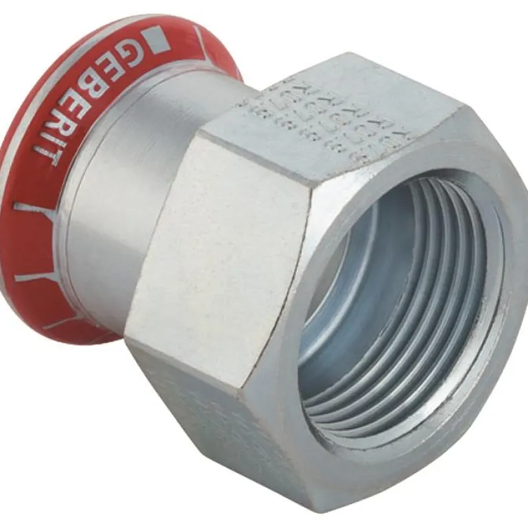 Geberit 1550899 on sinkitty sovitinliitäntä sisäisellä kartiomaisella kierteellä, 35 x 25 mm. Osa Geberit Mapressia. Puristetaan M-leuoilla.