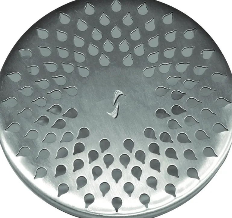 Siivilä ruostumatonta terästä, Drop-kuviointi. Siivilän ritilän halkaisija on 150 mm, ja se voidaan asentaa Purus-lattiakaivoihin.