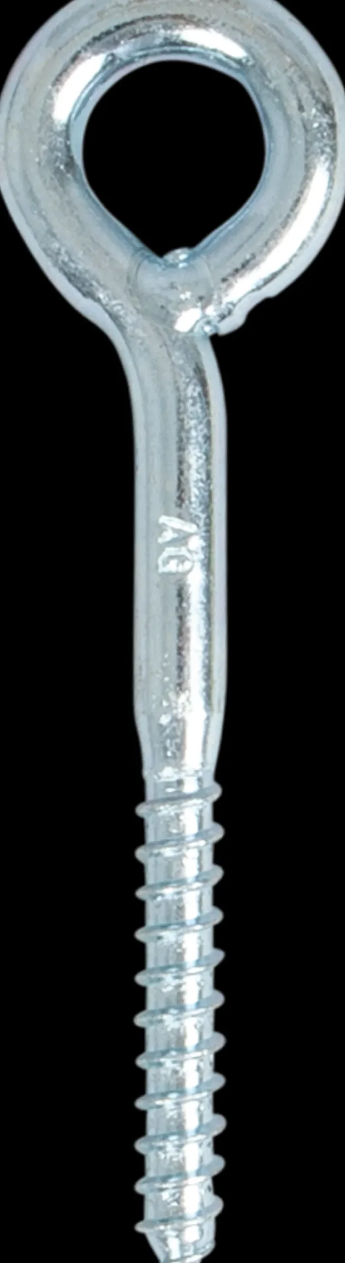 ESSVE-silmukkapuuruuvi, jossa on puukierteet ja suljettu silmukka, tarkoitettu materiaalien kiinnittämiseen puuhun.