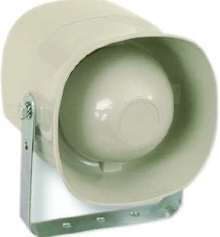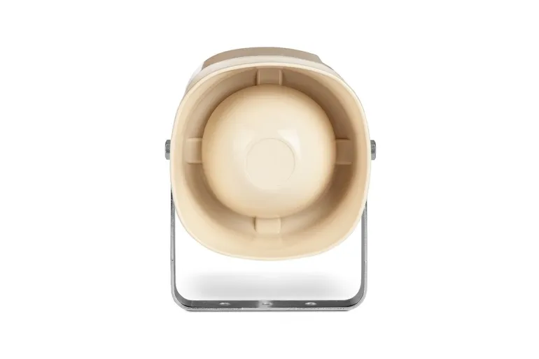 Elektroninen sireeni harmaata iskunkestävää muovia. Erittäin kova ääni, jonka taajuus kuuluu kauas ulkona. Liitäntäkaapelissa sabotaasisuojasilmukka. Ulkoasennukseen