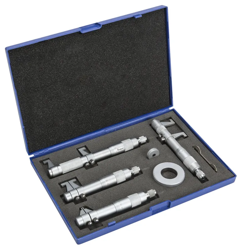 Sarja sisältäen 4 kappaletta sisämikrometrejä: 5-30 mm, 25-50 mm, 50-75 mm ja 75-100 mm. Mattakromatulla viimeistelyllä, tuntoräikällä (kitkakytkin) ja karan lukitusvivulla erinomaisen tarkkaa mittaustulosta varten.