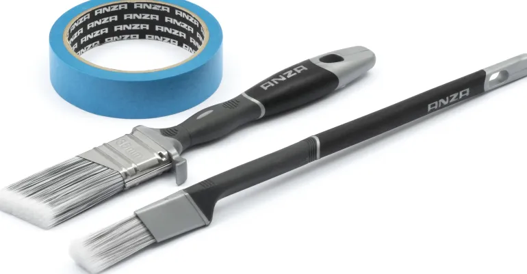 Sivellinsarja ikkunoiden maalaamiseen, joka sisältää Platinum-tarkkuussiveltimen 20 mm, Platinum-lakkasiveltimen 35 mm (vino) ja Platinum-maalarinteipin 25 mm x 25 m ulkokäyttöön.