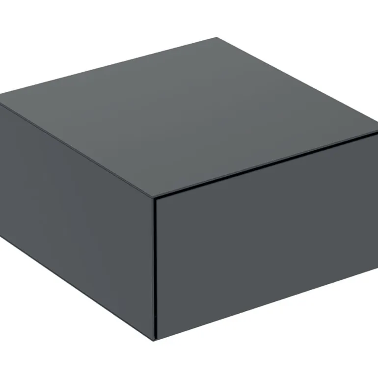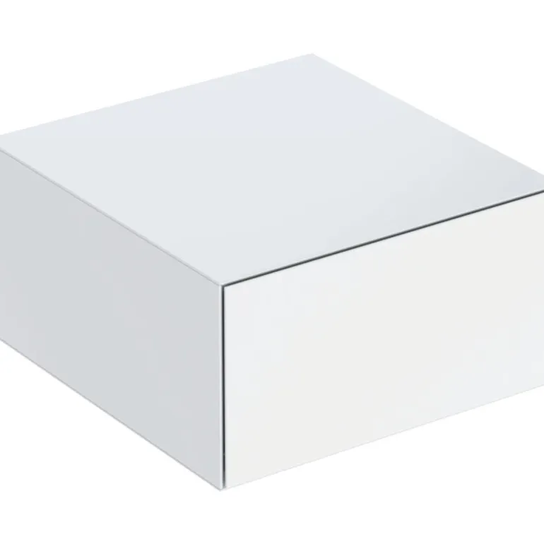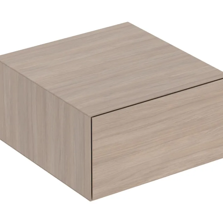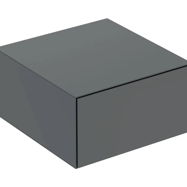 Sivukaappi yhdellä laatikolla. Push-to-open -mekanismilla ja hitaasti sulkeutuva laatikosto. Lujapuristetusta kolmikerroksisesta lastulevystä.