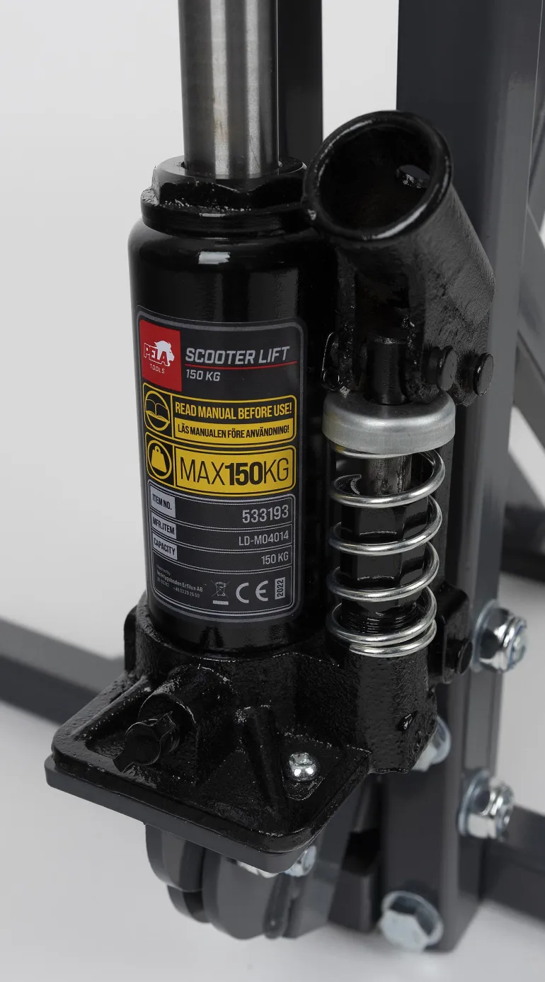 PELA 533193 on hydraulinen nostolaite skoottereille, mutta se toimii hyvin myös kaikille mopedeille. Alustassa on 2 kiinnikettä, joiden avulla voit helposti kiinnittää skootterin pohjalevyn päälle esimerkiksi hihnoilla.