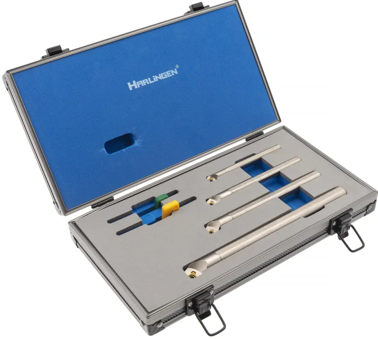 Harlingen 508296 on sorvinteräsarja, jossa 4 kpl sisäsorvausteränpitimiä vaihdettavilla terillä. Sisältää teränpitimet: 1 x 7×102 mm, 1 x 9×126 mm, 1 x 11×151 mm, 1 x 15×202 mm. Mukana myös 2 x torx-avainta. Toimitetaan säilytyslaukussa.