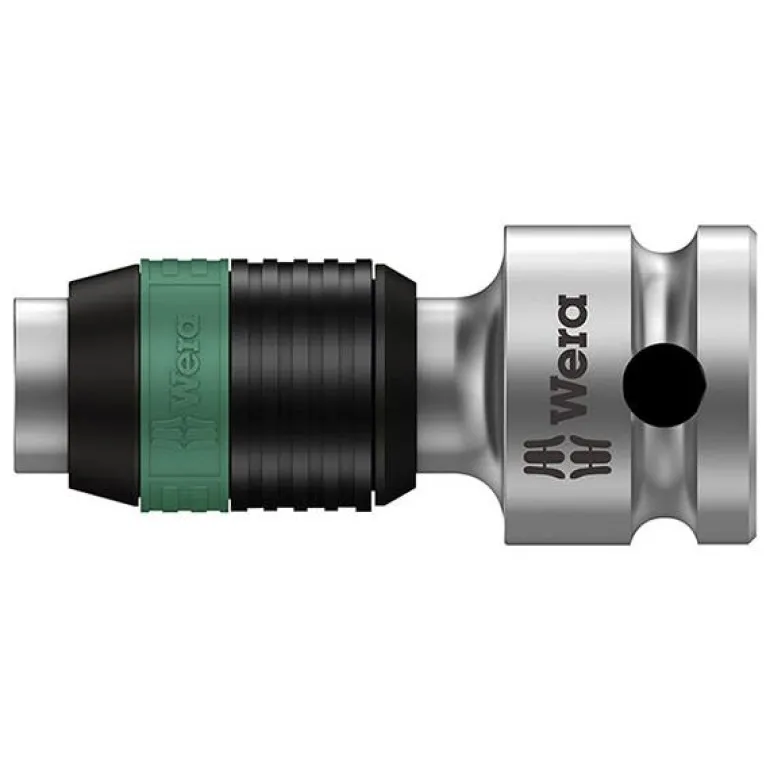 Kromattu sovitin, jolla muunnetaan 3/8″ nelikantakiinnitys 1/4″ kuusiokantaan. Sovittimen pituus on 44 mm ja siinä on pikavapautus kärkien nopeaan vaihtamiseen.