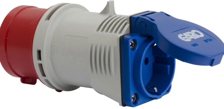 Garo 352209 on sovitin, jossa on ruuvikiristin ja IEC-virta 16 A. Sovittimessa on suora pistokkeen kulma ja päähän asennettu schuko-pistoke. Malli on suunniteltu väliaikaiseen sisä- tai ulkokäyttöön teollisuusympäristöissä. Kapselointiluokka (IP): IP44