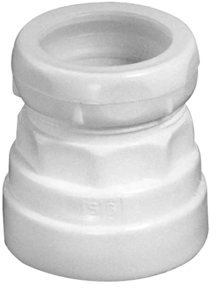 Faluplast 2910130 on liitäntä kiristysrenkaalla ja sisäkierteellä. Sisätilojen viemäriputkiin.