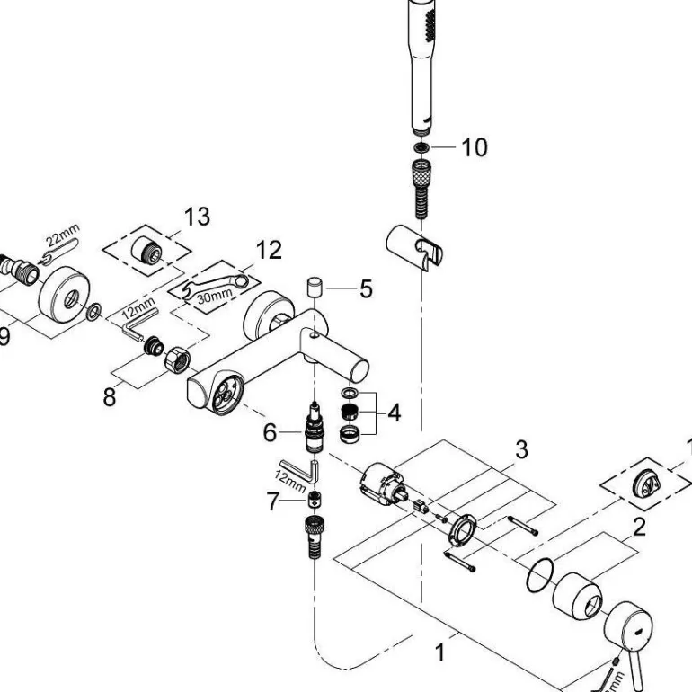 Concetto-termostaattisekoitin (150 cc) ammeeseen ja suihkuun, DN 15 käsisuihkulla. Termostaattisekoittimessa on metallikahva ja se on tarkoitettu asennettavaksi seinään. Termostaattisekoittimessa on keraaminen 46 mm:n GROHE SilkMove -säätöosa, säädettävä virtauksen rajoitin, automaattinen vaihdin kylpyammeen ja suihkun välillä, sovitin työkaluttomaan vaihtoon, integroitu takaiskuventtiili suihkun ulostulossa (1/2″) ja takaiskuventtiili takaisinvirtausta vastaan. Termostaattisekoittimessa on kromattu GROHE StarLight -pintakäsittely, joka helpottaa puhdistusta ja pitää sekoittimen kiiltävänä pitkään. Käsisuihku on Euphoria Cosmopolitan. Siinä on GROHE EcoJoy -teknologia, jonka ansiosta vedenkulutus on enintään 9,5 l/min. Käsisuihkun suihkutustapa on Normal Spray ja käsisuihkun puhdistus on helppoa SpeedClean -kalkinpoistojärjestelmän ja sisäänrakennetun WaterGuiden ansiosta, joka pitää käsisuihkun aina sopivan viileänä. Suihkuletku on RelexaFlex (1 500 mm), jonka TwistFree-ominaisuus estää sen kiertymisen.