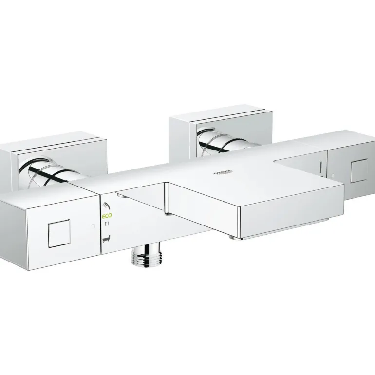 Käytä GROHE AquaDimmer Ecoa vaihtaaksesi kylpyammeen hanan ja suihkun välillä ja rajoittaaksesi veden virtausta kulutuksen vähentämiseksi. GROHE EasyLogic -säätörengas tekee veden lämpötilan ja virtauksen valinnasta helppoa ja luonnollista. Kulutusta kestävä kromattu GROHE StarLight -pinnoite pitää termostaatin raikkaan näköisenä useiden vuosien ajan. Pyyhintä kuivalla liinalla riittää ylläpitämään virheettömän kiillon.