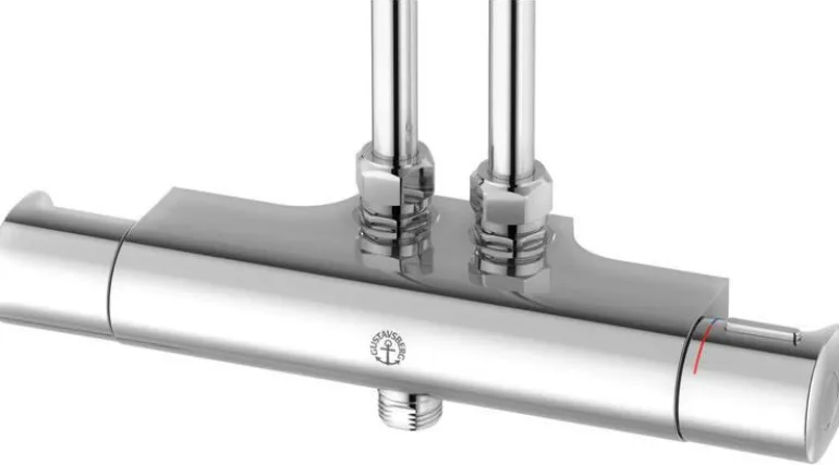 Gustavsbergin Atlantic-termostaattihana, joka voidaan yhdistää kylpyammejuoksuputkeen tai suihkusettiin. Hanassa sisäänrakennettu, automaattinen kuumavesisuoja, joks suojaa palovammoilta. Lämmönsäätökahvassa rajoituspainike, joka pitää veden lämpötilan 38 °C:ssa.