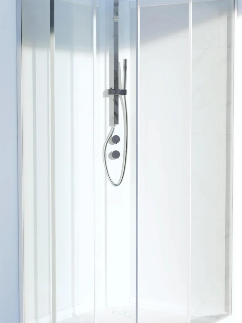 Svedbergs 65146 on Ritual-suihkukaapin paneeli, jossa on syvennykset suihkusetin asennusta varten.