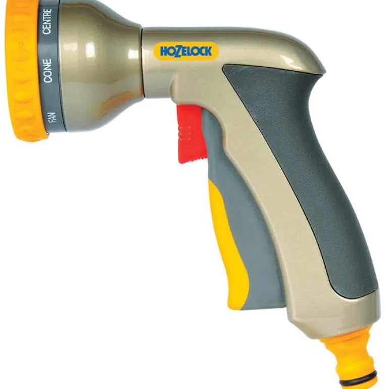 Hozelock Multi Plus -suihkupistoolissa on erittäin kestävä, jauhelakattu valumetallirunko. Suihkupistoolissa on jopa kahdeksan suihkukuviovaihtoehtoa, lukittava liipaisin ja miellyttävän pehmeä kädensija.